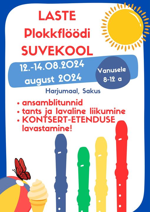 12.-14. augustil toimub plokkflöödi suvekool Saku noortelaagris (https://talu.eelk.ee/). Oodatud on plokkflöödiõpilased vanuses 8-12 eluaastat ning vanemad õpilased, kes on plokkflööti õppinud kuni 5 aastat.